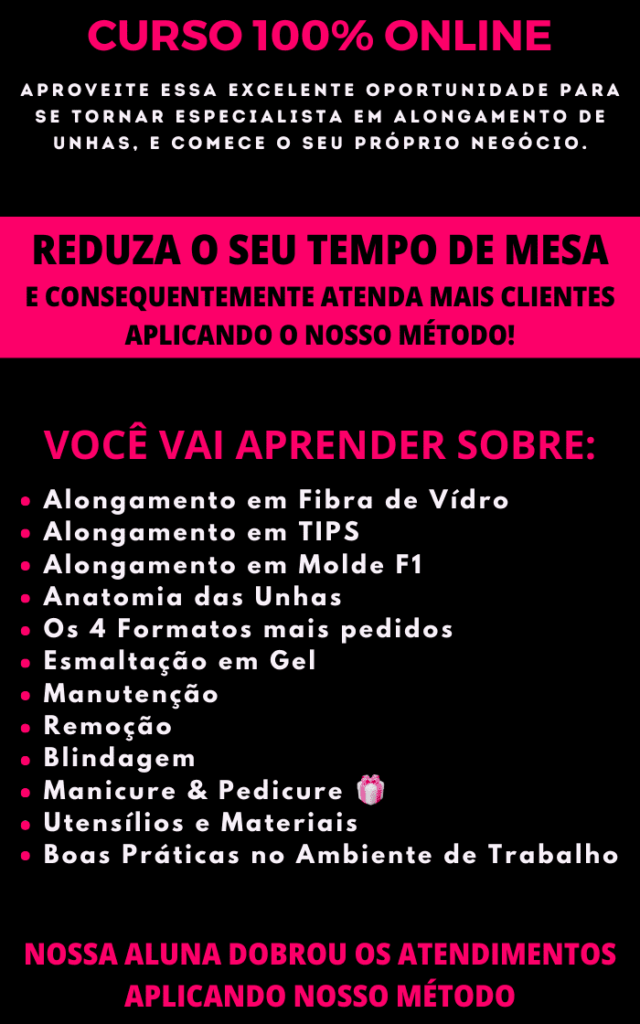 É um Grupo no Telegram, onde você vai poder Interagir com as outras Alunas do Curso, conversar sobre as coisas do Mundo das Unhas, sobre o Curso, mandar fotos dos seus trabalhos e pedir a opinião das outras alunas.